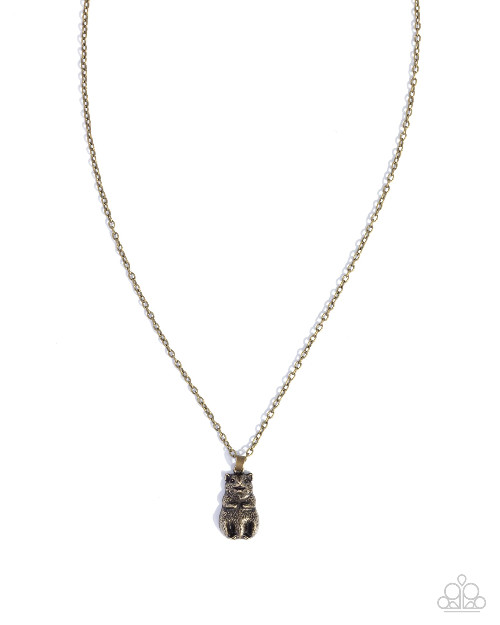 Gliding along a classic brass chain, a high-sheen, texture-brushed Quokka-inspired pendant cascades below the neckline for a happy, playful look. Features an adjustable clasp closure.