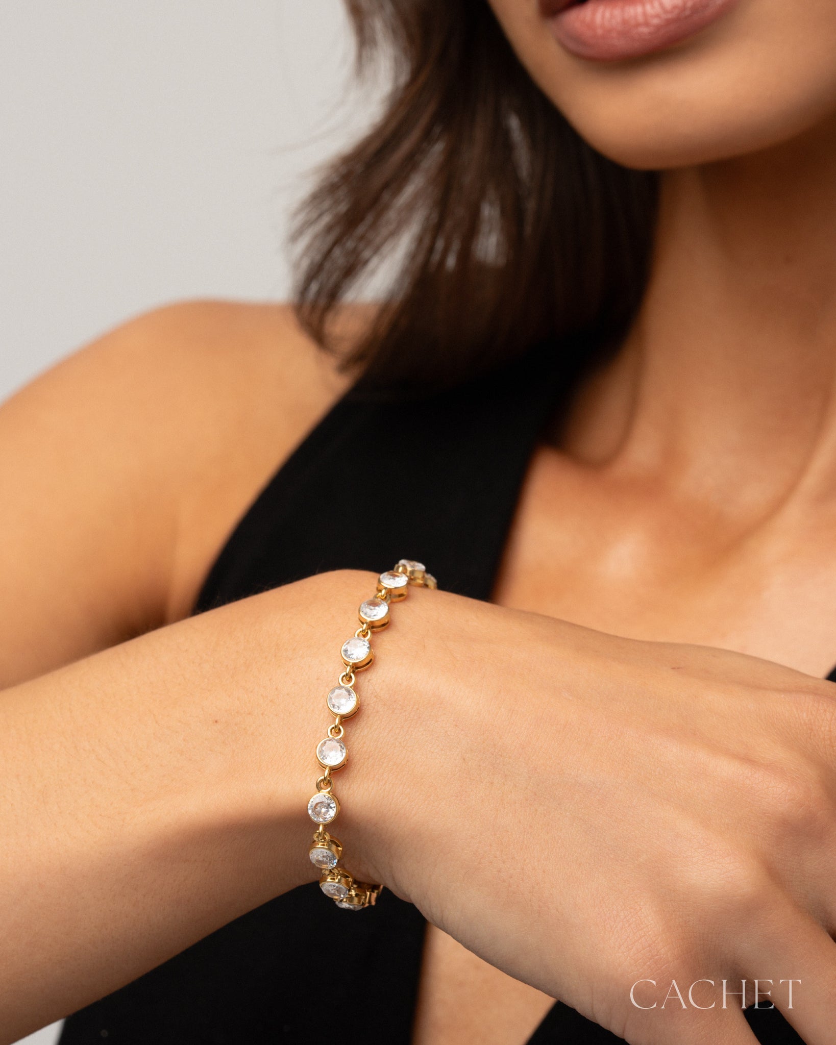 Like a dream made tangible, the bracelet "Ouraeâ" circles the wrist with luminous, high-end cubic zirconia radiance.