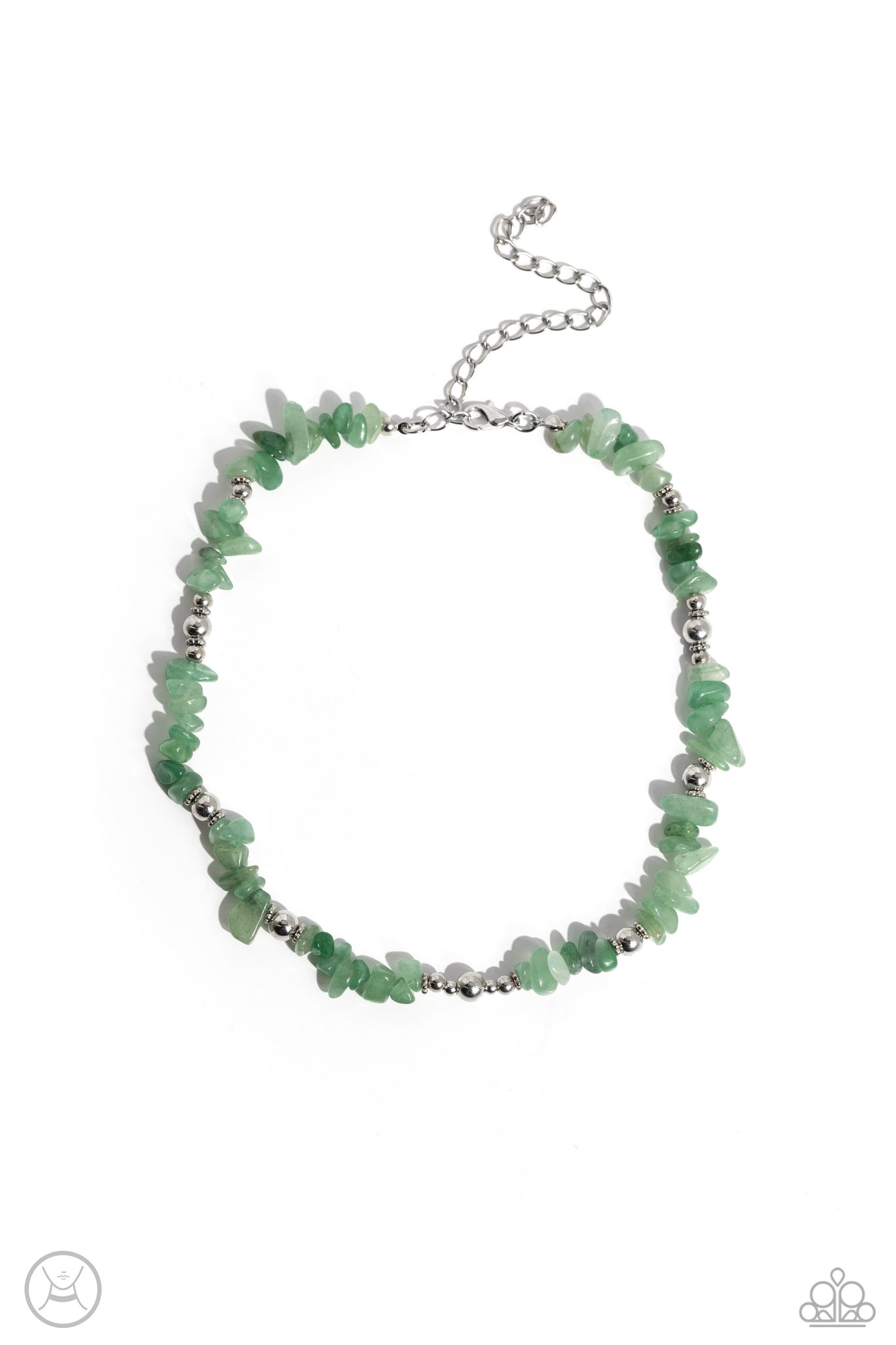Infused along an invisible string, a chiseled collection of jade stones and various silver beads wrap around the collar for an earthy pop of color. Features an adjustable clasp closure. As the stone elements in this piece are natural, some color variation is normal.