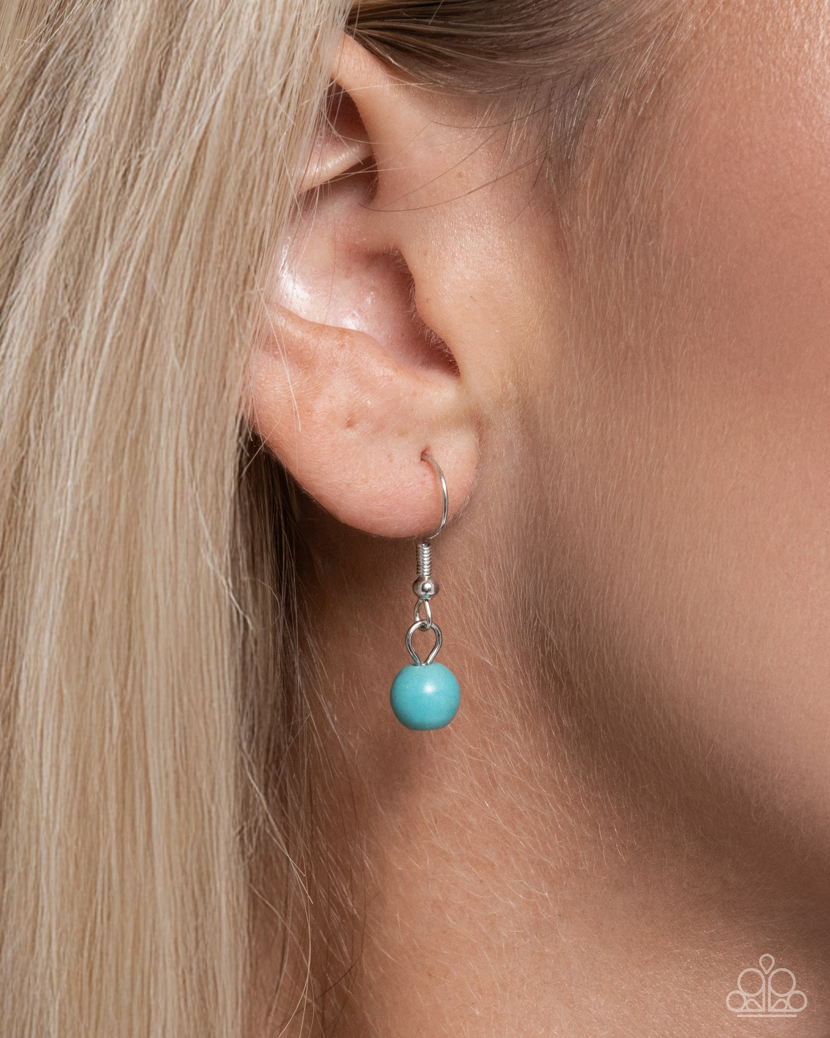 Pressed in a twist-textured silver frame, an upside-down turquoise teardrop stone slides along a strand of silver snake chain with smaller copies of the teardrop stones, these right-side-up, stand out on each end of the adjustable strand for a seasonally artisanal look. Features a bolo closure. As the stone elements in this piece are natural, some color variation is normal.