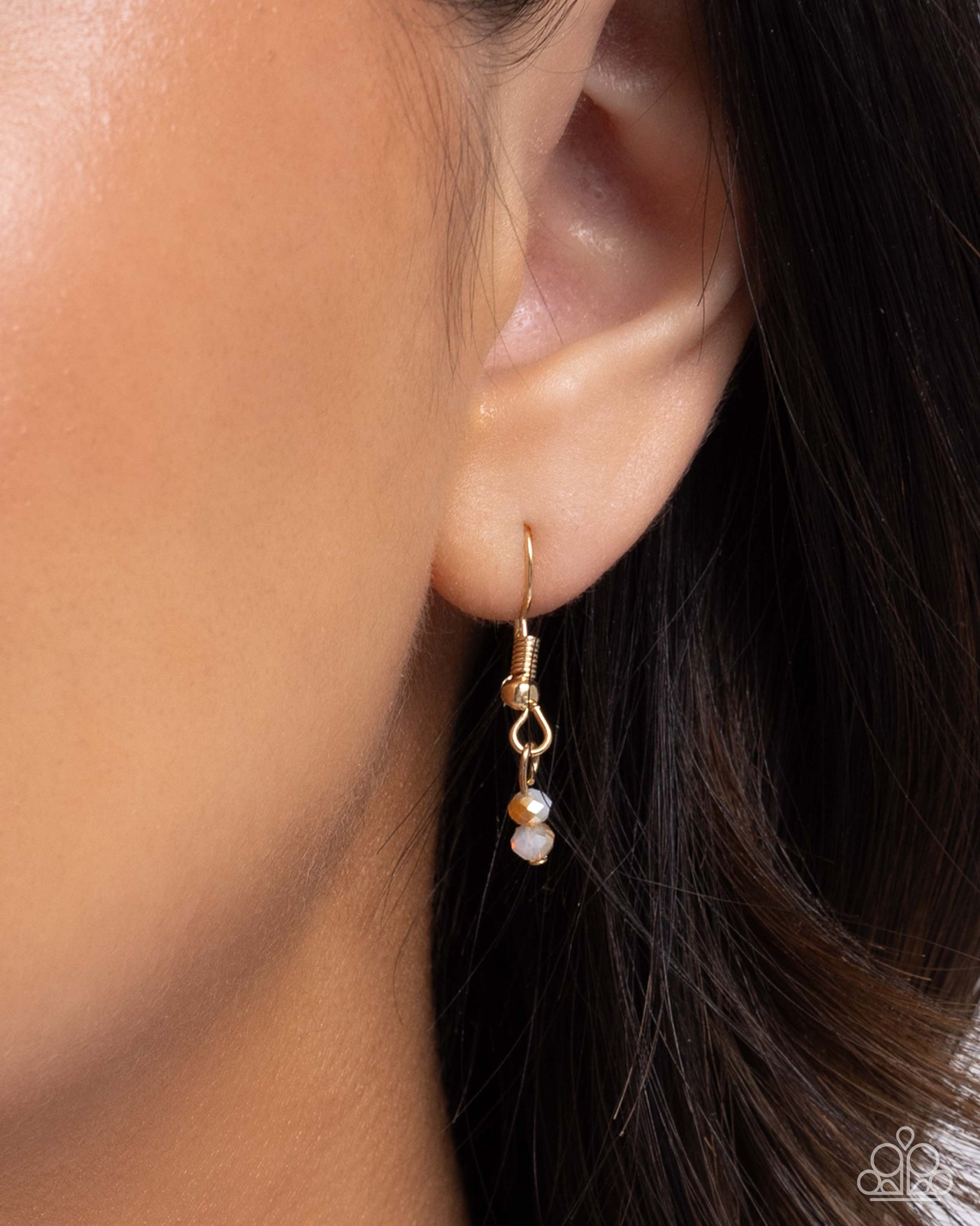 A delicate strand of faceted orange beads is accented with teardrop-shaped orange crystals. The beads and crystals are linked by small gold beads, creating a dainty, elegant design. Features an adjustable clasp closure.