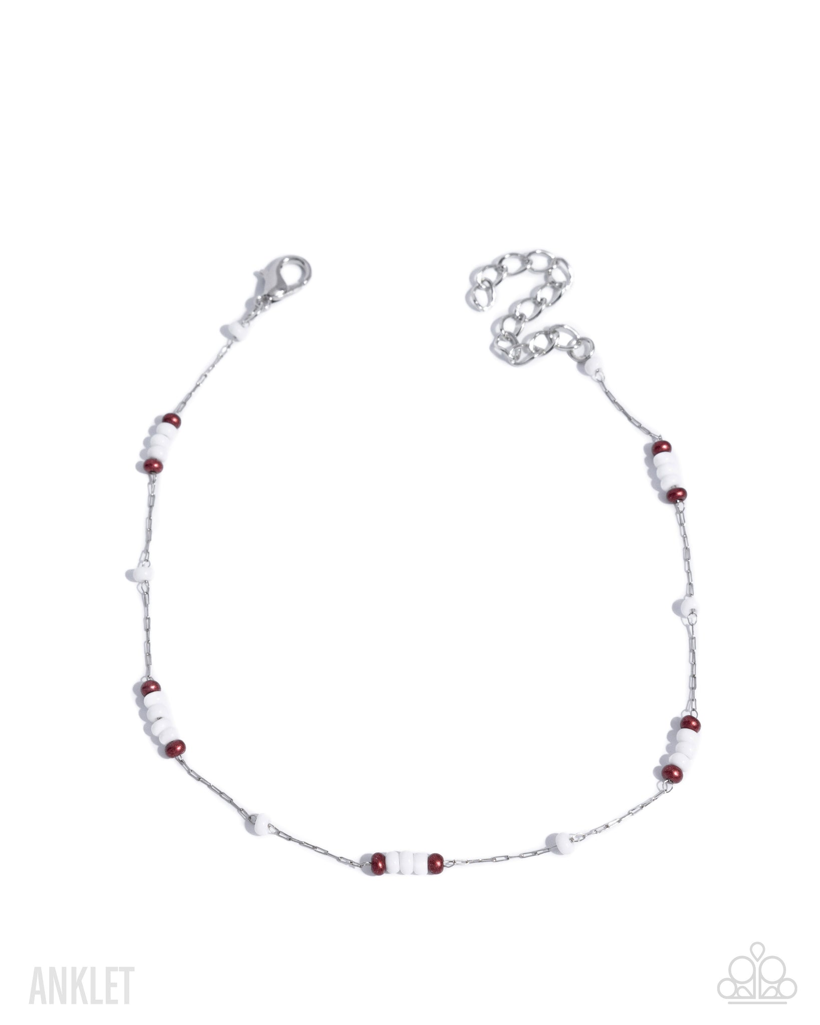 Sporadically infused along a dainty silver chain, a collection of white and copper-painted seed beads patterns and coalesce around the ankle for an adorable pop of color. Features an adjustable clasp closure.