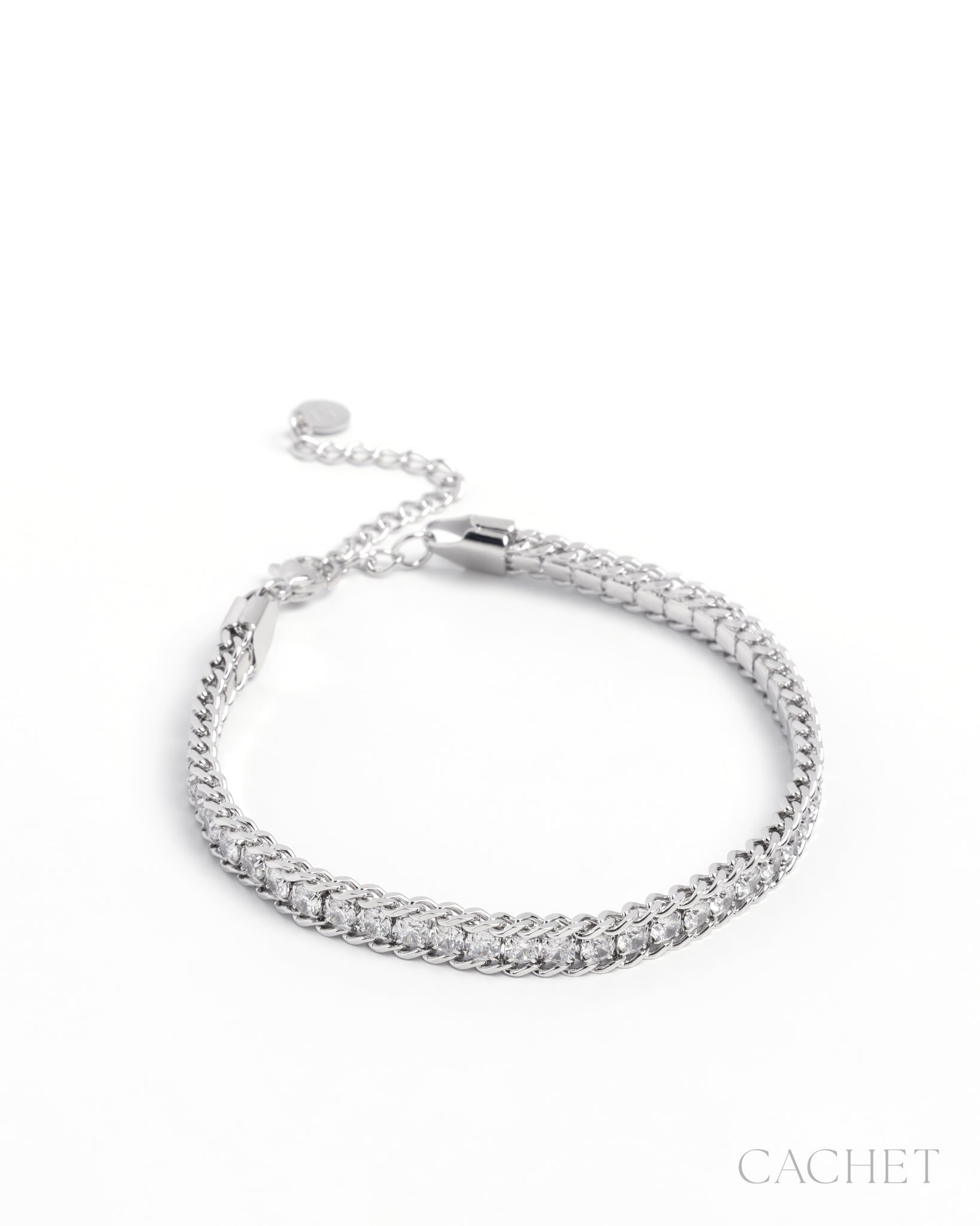 Like brilliance refined to perfection, the bracelet “Épatant” adorns the wrist in a continuous stream of dainty elevated rhinestones, each facet radiating splendid light that captures the very essence of greatness.