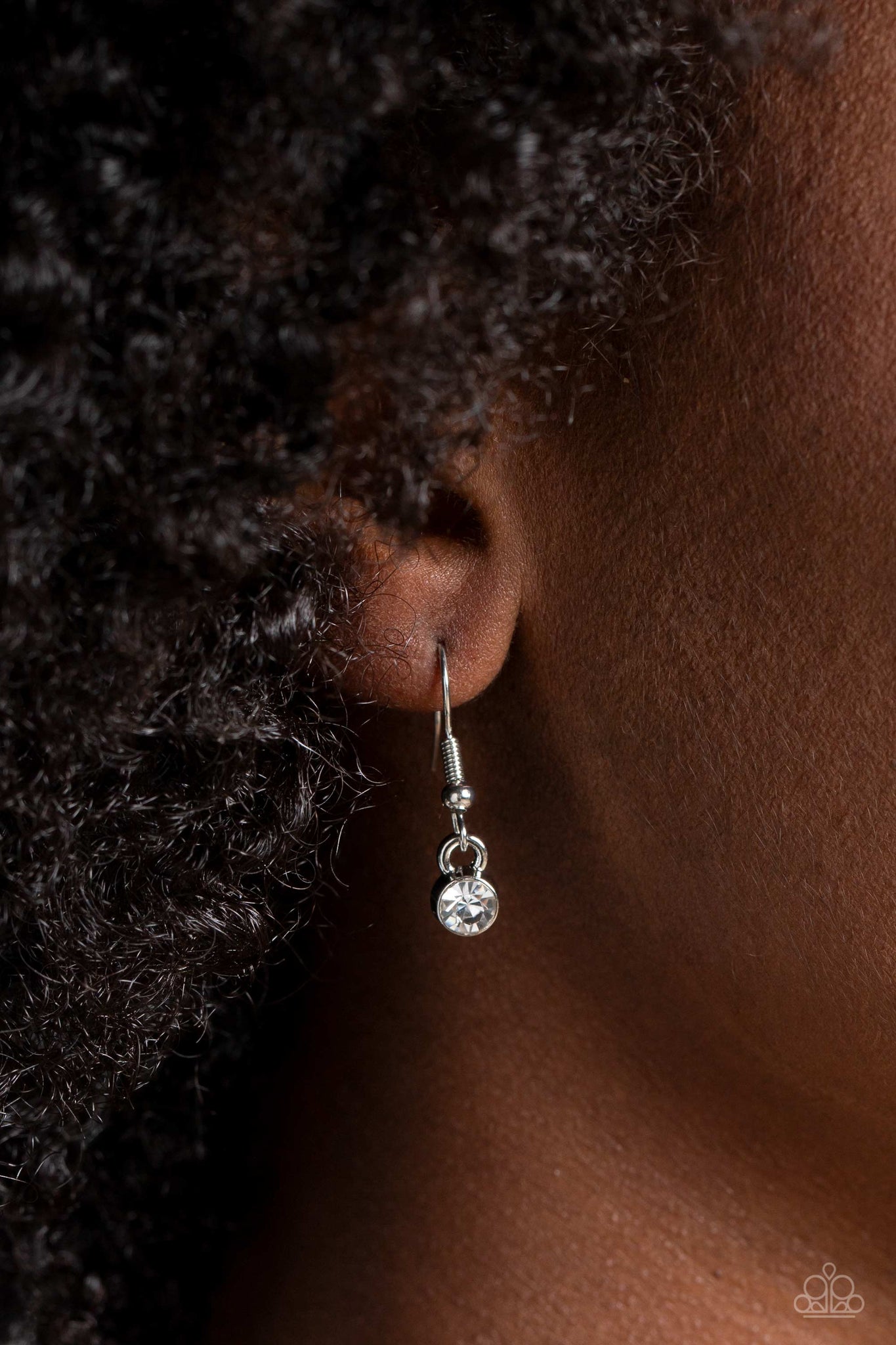 Yellow rhinestone petals bloom from the center of a white rhinestone center, creating a sparkling flower that glistens atop a dainty silver chain. Features an adjustable clasp closure.