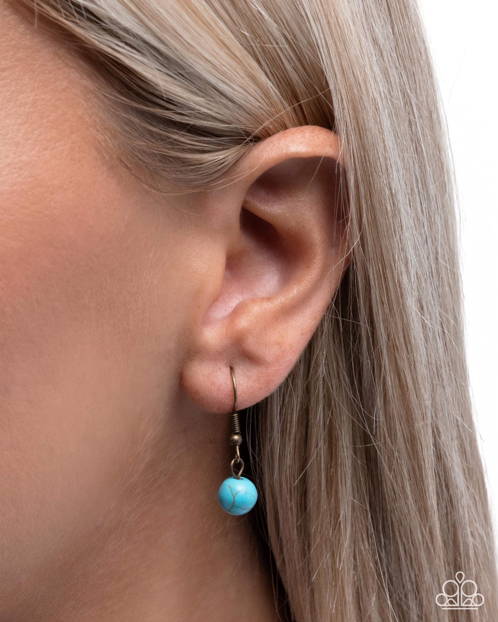 Dotted with a collection of round turquoise stones, brass studs, and a centermost turquoise stone heart, a glistening brass cross glides along the neckline from a classic brass chain for an ethereally earthy look. Features an adjustable clasp closure. As the stone elements in this piece are natural, some color variation is normal.