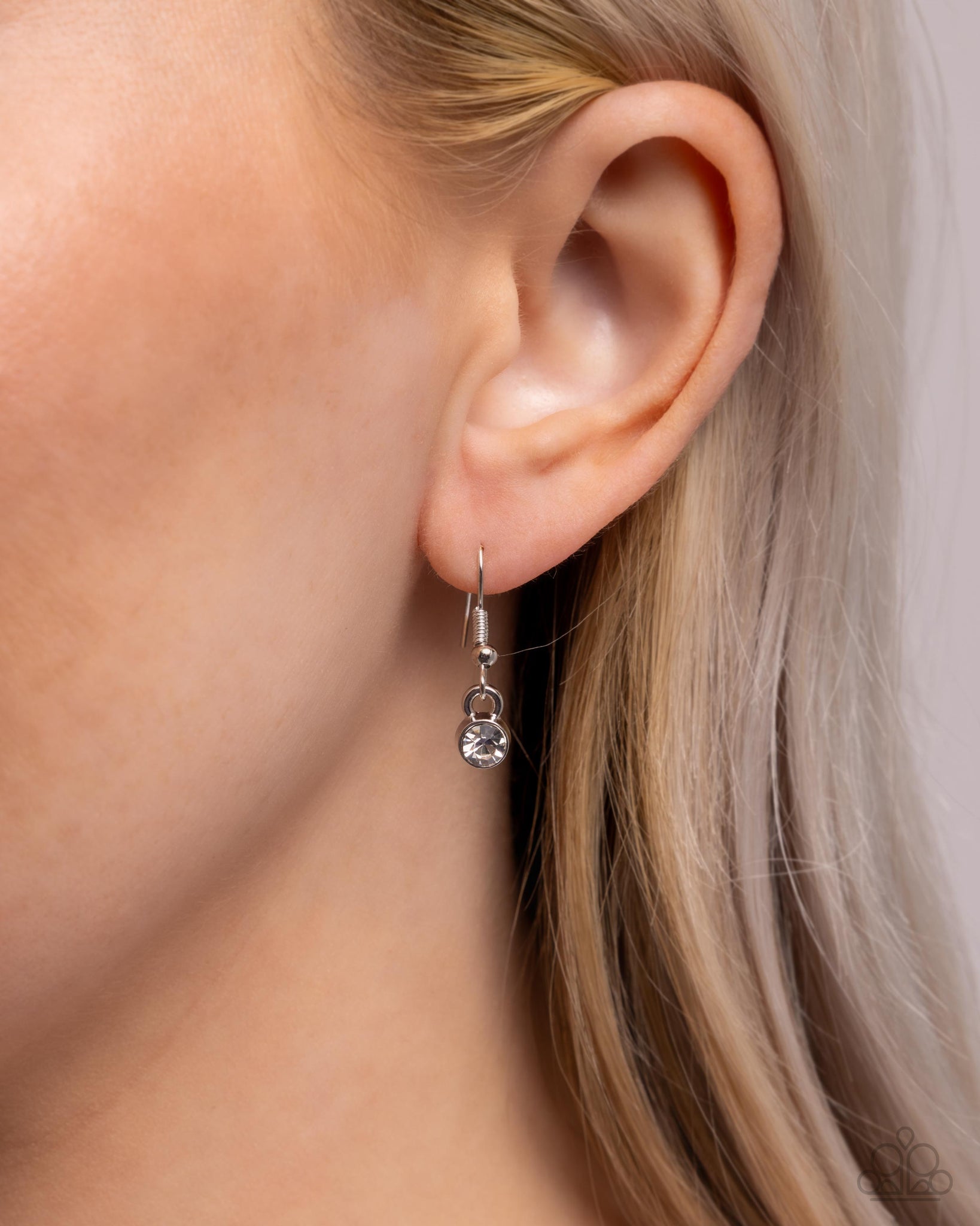 Dusted in glittery white rhinestones, an elongated silver key glides along a dainty silver paperclip chain for a playful pendant. Featured in the center of the curly key, additional white rhinestones in varying sizes and a trio of transparent white teardrops glisten for a shimmery finish. Features an adjustable clasp closure.