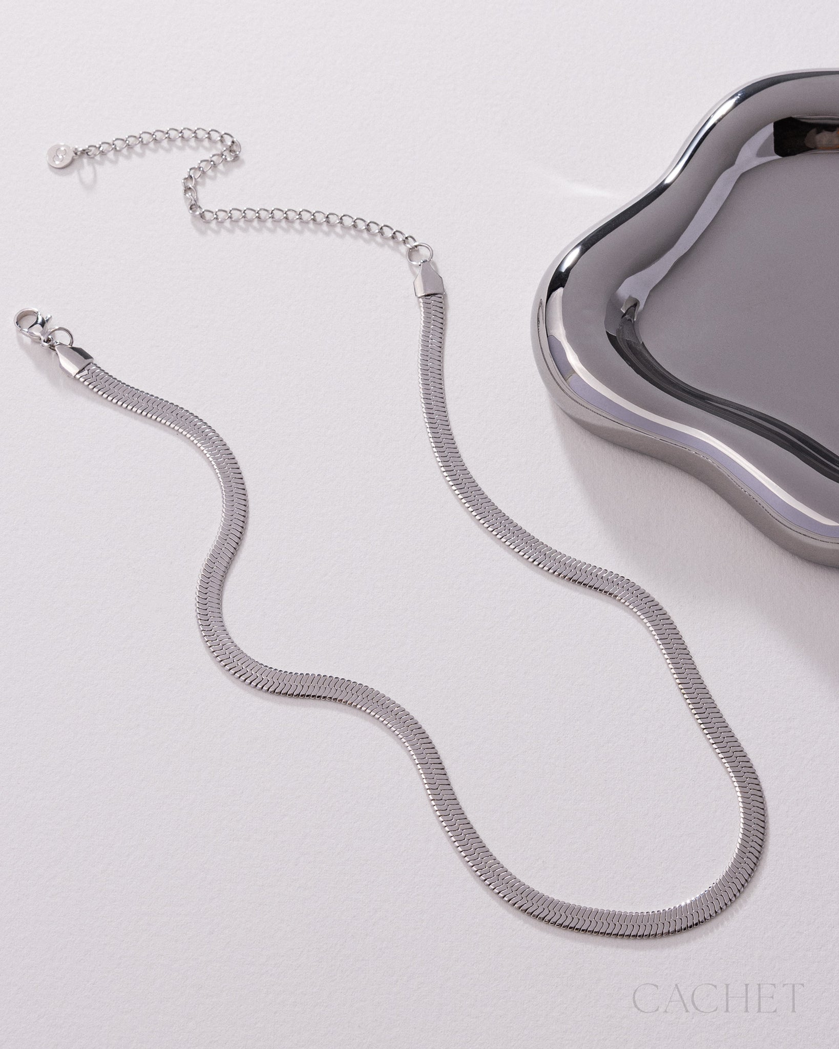 Like a bond that glides unspoken, the necklace "Sorelle" traces the collar in a fluid silver silhouette quiet emblem of elegance, closeness, and kinship.
