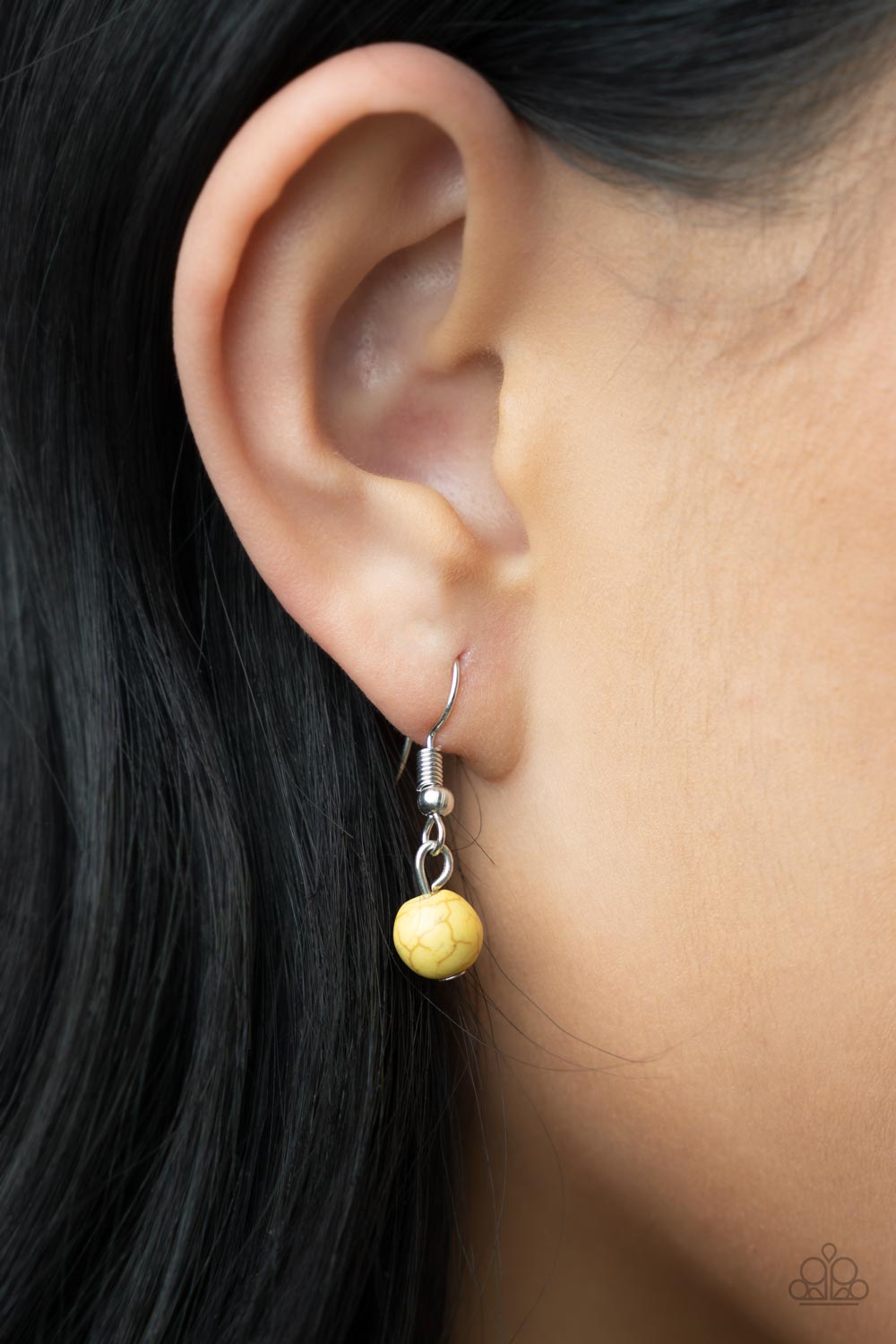 Featuring bright yellow stones, a double layer of pendants falls from lengthened silver chains. A round yellow stone is pressed into the center of a silver sunburst cutout frame. Dancing below, the second pendant features a yellow stone bar encased in a silver frame and accented with a fringe of swaying silver plates for a mystically rustic finish. Features an adjustable clasp closure.