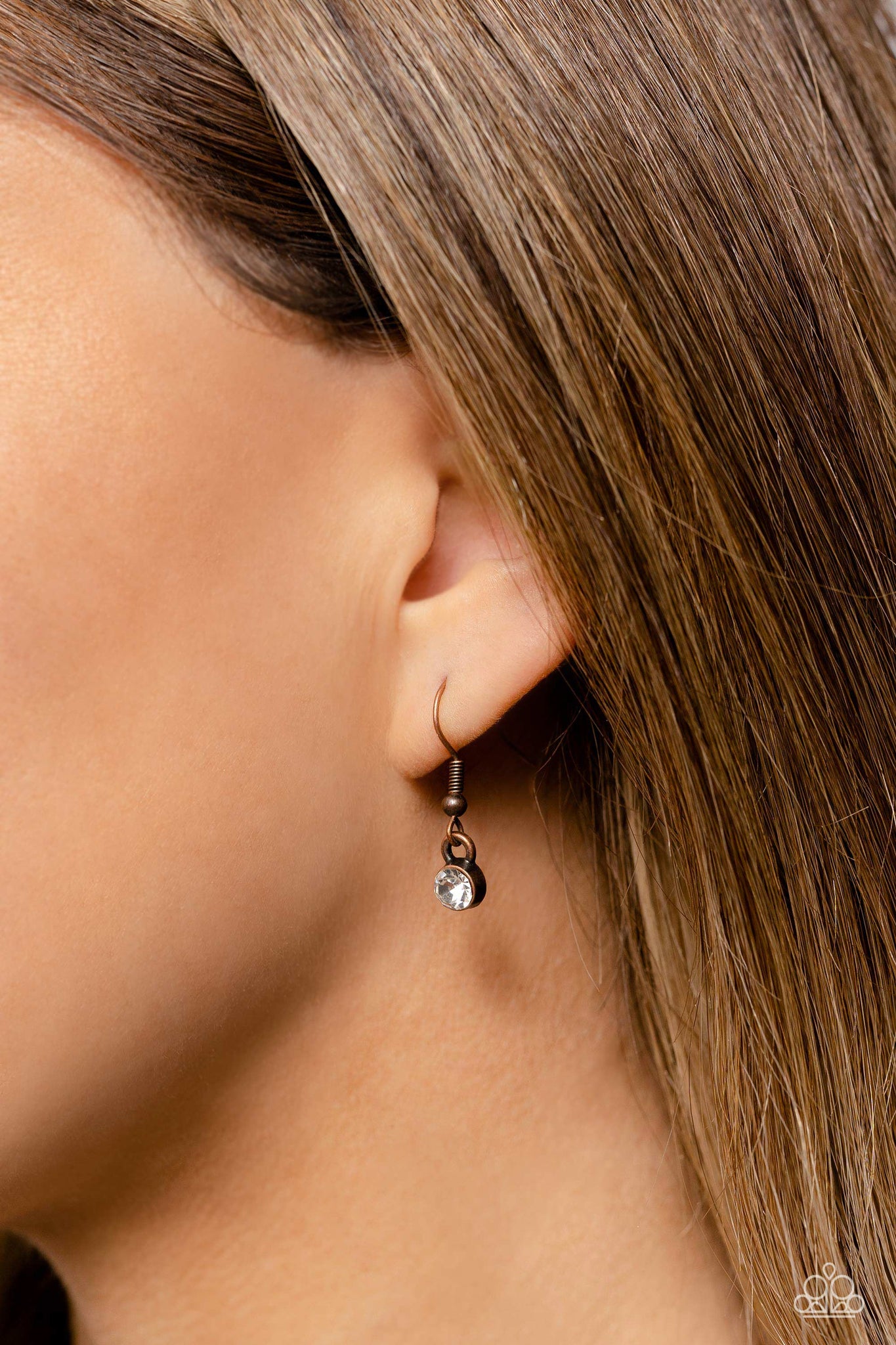 Set in clusters around the neckline, a collection of shiny copper bars with a metallic and reflective finish glimmer. Dainty white gems, pressed into copper sun-studded frames, border the tops and bottoms of the coppery bars for additional glitz in the industrial, statement piece. Features an adjustable clasp closure.