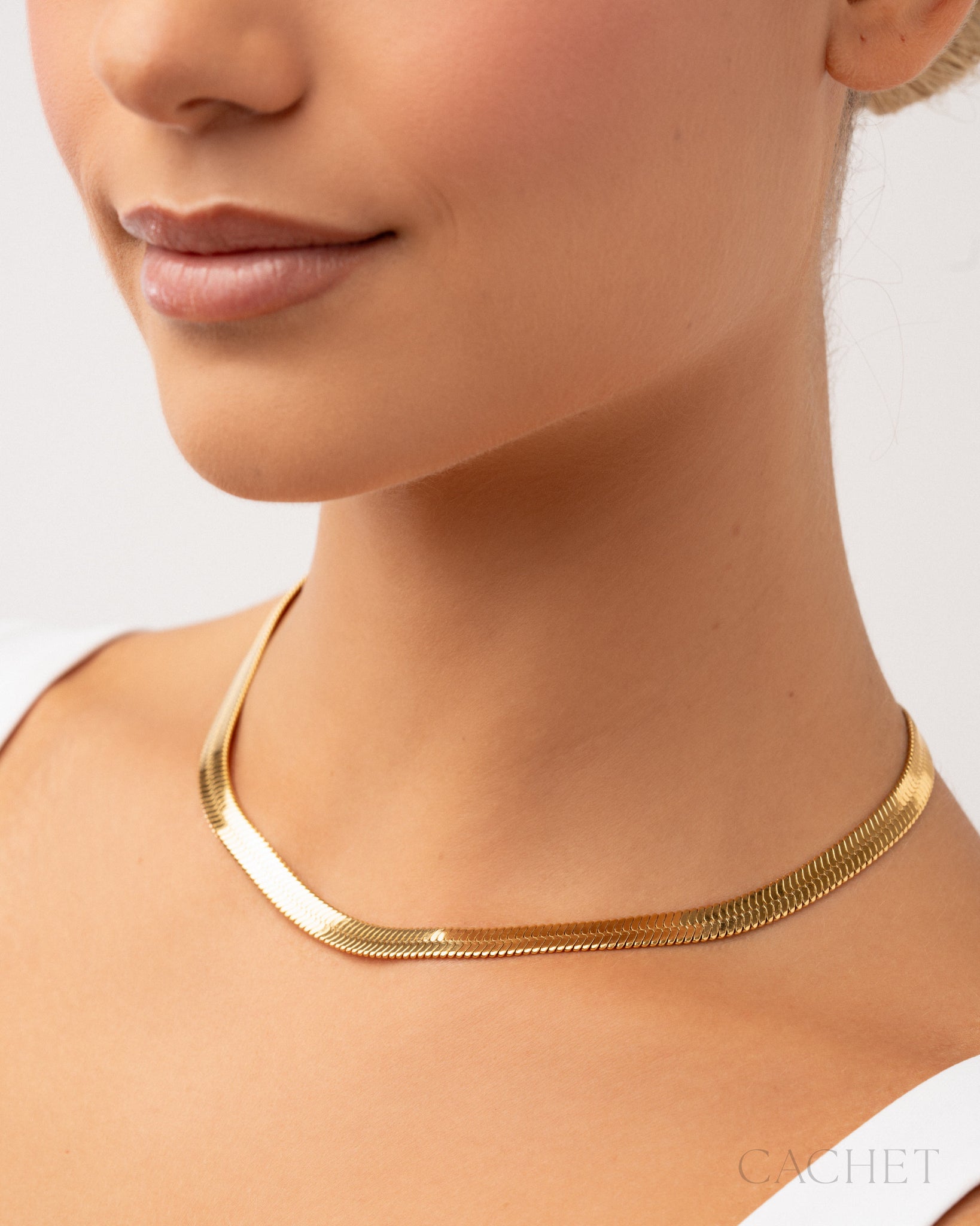Like fluid movement, the necklace "Sway" glides along the neckline, capturing the quiet rhythm of modern elegance.