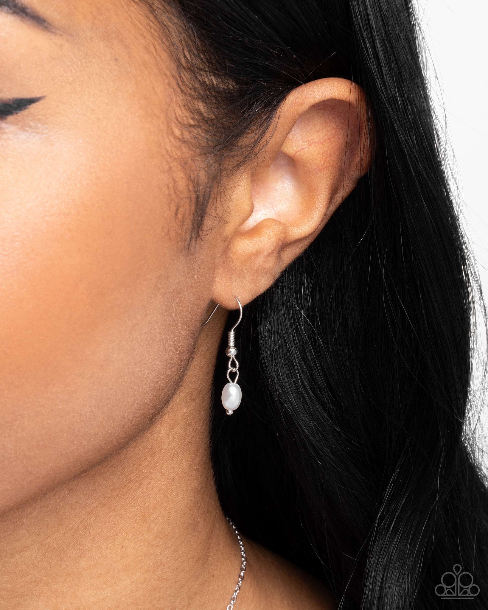 Featuring a pearlized finish, a duo of Primrose tulips with white pearl centers blooms from a green pearlized stem, connecting to a classic silver chain for a whimsically dainty display. Features an adjustable clasp closure.